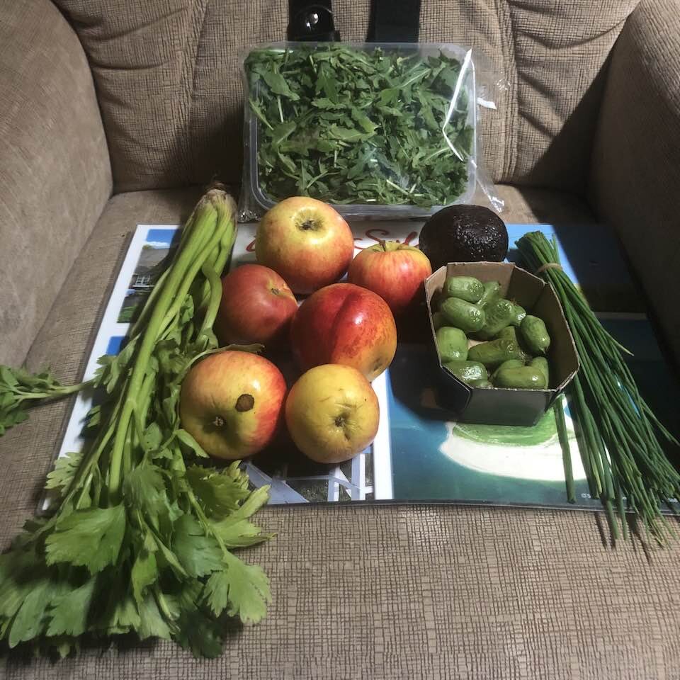 - Бесплатка среды в сквоте Берлина. Когда пишу в сквоте, сразу вспоминаются “Байки из склепа” Привезли много-много-много редиски, но редиску не ем, поэтому брать не стала. Было также кольраби, его тоже игнорирую. Немного перца и моркови, но у меня ещё с прошлого раза эти товарищи задержались в холодильнике. И огромный сноп тёмно-зелёных листьев на длинных ногах, пробовала их бросать в борщ - вкусно получается, но борщ варить не буду, оставила для других. Взяла: Сельдерей - один пучок, Авокадо - 1шт, оказалось не съедобное. Зел лук - 1 пучок, Руккола - 1 упаковка. Понимаю её только с помидорами - завтра и куплю. Если знаете, как ещё её вкусно есть, подскажите. Пять яблок, один персик ( вкусный, но один) и коробочка с неизвестными зелёными ягодами - вкусные, отдалённо напоминают переспевший крыжовник, но только отдалённо. Пока писала, их умяла за обе щеки. Собственно говоря, и всё.