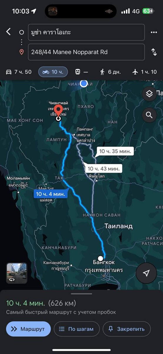 3-й день: Проехал 626 км за день, и, честно говоря, я просто офигел. Заняло 11 часов, чтобы долететь до моего пункта назначения. Максимальная скорость, которую удалось развить, составила 115 км/ч. Было много страшных моментов: ночь, серпантин, собаки, которые неожиданно решили отдохнуть на горячем асфальте после жаркого дня, а также дождь, ветер, фуры и глупые водители пикапов, которые постоянно пытались подрезать меня и ехали прямо за спиной. Но ничто из всего этого не помешало мне добраться до первой точки - Чиангмая. Я заселился в номер и улетел в мир мечтаний, считая барашков 😂. Знаете, что самое интересное? Я видел так много всего и размышлял о бесконечном количестве вещей. Общий пройденный путь составляет 1429 км. Больше историй впереди! Следите за моим каналом.