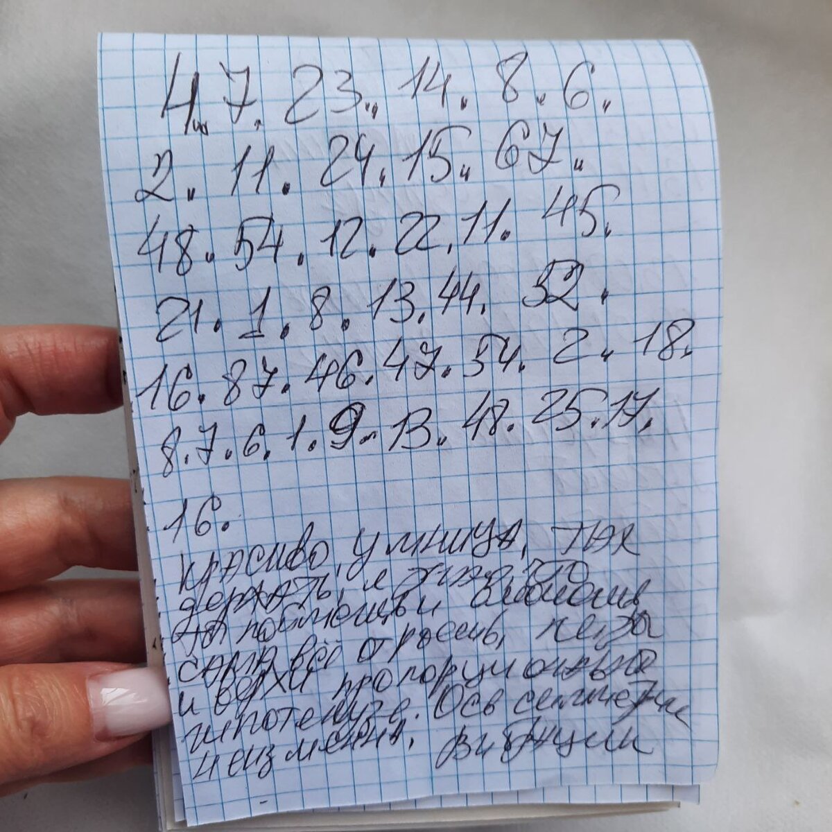 Ну ОК, уже не в первой, значит так надо. Продолжаю слушать медитацию, беру ручку и пишу...пошёл цифровой ряд, что значат эти цифры, в душе не чаю, но пишу далее...