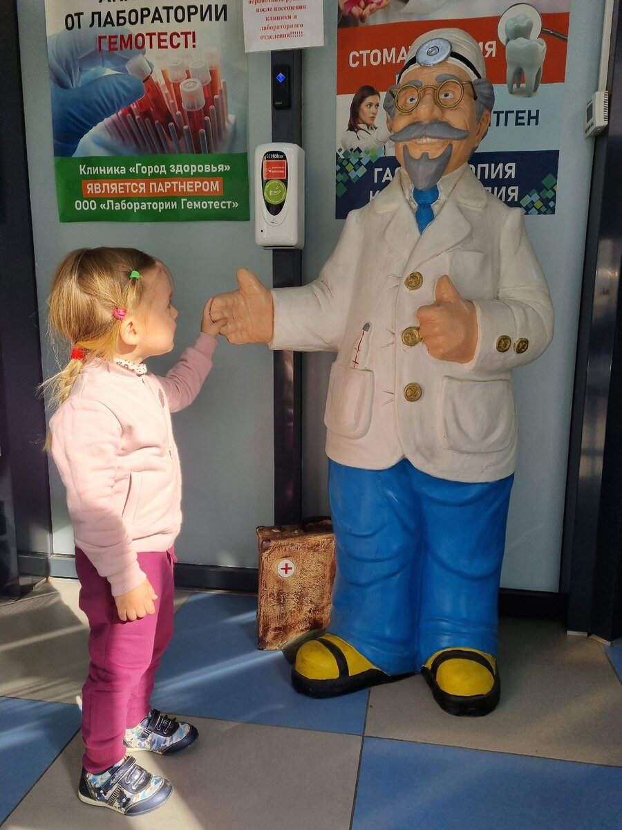 В понедельник я рассказала, что мы будем менять детский сад, что новый договор уже заключен и что уже оплачен первый месяц. До нового садика нам удобнее и быстрее добираться, но в него требуется справка от педиатра, что ребенок здоров. Детсад частный, поэтому просто справки от педиатра достаточно, остальных специалистов проходить не нужно, а я только и рада этому. Но все же мы планируем пройти и полный медосмотр, как раз в 3 года нужно. Мне звонили с нашей поликлиники и сказали, что пару раз в месяц по субботам можно пройти сразу всех врачей, только нужно записаться. В новый садик мы планируем пойти уже в этот понедельник, 2 октября, а справка нужна "свежая" - за последние 3 дня. Вот и записала я нас на сегодня на 11:00 на прием к педиатру в частную клинику, чтобы не возникало лишних вопросов. Врач нас посмотрела, послушала, спросила есть ли жалобы, я рассказала про остаточный кашель, выписали лекарства, но и справку, что мы здоровы, тоже дали. Цена вопроса - 2 тыс/рублей. Вышли из ка