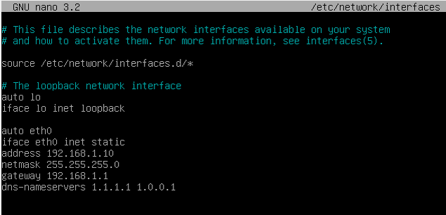 sudo nano /etc/network/interfaces