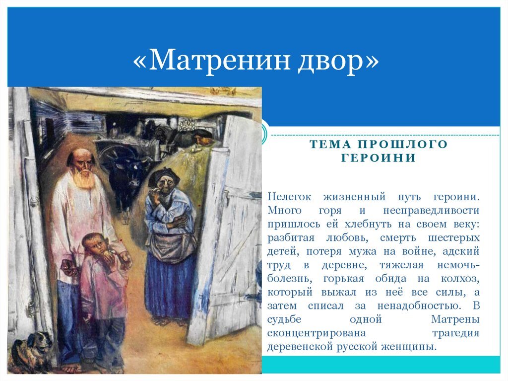 Но больше верю я Анне Ахматовой, отозвавшейся о рассказе: "Удивительная вещь… Удивительно, как могли напечатать… Это пострашнее "Ивана Денисовича..." Там можно всё на культ спихнуть, а тут… Ведь у него не Матрёна, а вся русская деревня под паровоз попала и вдребезги…"(15).