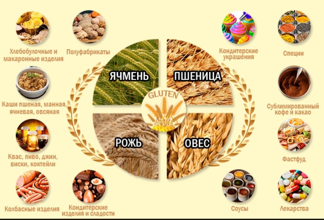 Глютен (клейковина) Некоторые из нас по-разному реагируют на глютен, организм может воспринимать его как токсин, заставляя иммунные клетки чрезмерно реагировать и атаковать его. Если неосознанно чувствительный человек продолжает есть глютен, это создает своего рода поле битвы, приводящее к воспалению. Побочные эффекты: • усталость • вздутие живота • чередование запоров и диареи • непреднамеренная потеря веса • недоедание • повреждение кишечника Возможные реакции на глютен: • Целиакия — генетическое аутоиммунное заболевание тонкого кишечника • Аллергия на пшеницу • СРК (синдром раздраженного кишечника) • Чувствительность к глютену СИМПТОМЫ: • Целиакия - вздутие, диарея, боли в животе, признаки анемии, остеопороз, быстрая утомляемость, вялость, слабость. • Аллергия на пшеницу - кожный зуд и сыпь, отек слизистых (заложенность носа, отек языка, глотки, отечность глаз), слезотечение, приступы удушья. • СРК - хроническая боль в кишечнике, вздутие, дискомфорт, нарушение регулярной функ