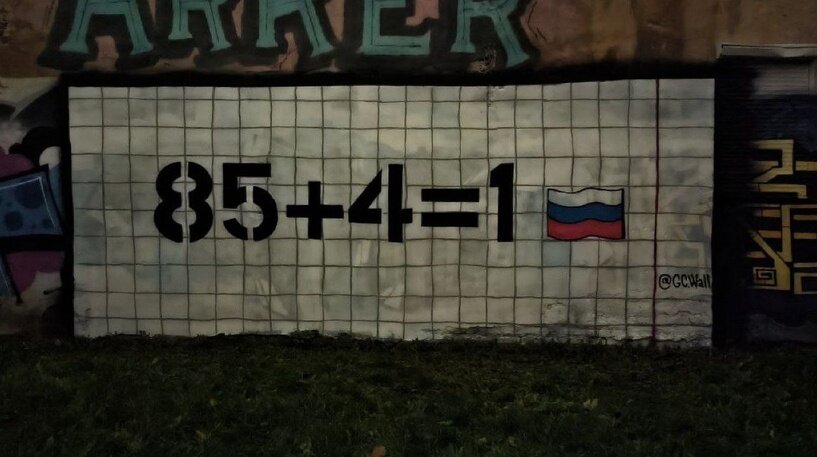 Жители города обнаружили новые уличные работы в сквере у Театра драмы и около Макаровского моста. Все они выглядят как надписи на тетрадном листе в клетку. Рисунки появились в ночь на 30 сентября. В этот день в России отмечают День присоединения новых регионов. Надписи на граффити содержат текст «Я с тобой. Не сомневайся» и «Вместе навсегда». К празднику отсылает работа «85+4=1», в конце которой пририсован триколор. Одно изображение нарисовали прямо поверх работы известного художника Славы ПТРК. Она продержалась чистой менее суток. Вандалы уже исписали граффити. Все работы подписаны GC.Well. Фотографии выставили в одноименном телеграм-канале. Его создали за день до публикации снимков. Главная новость по теме «Не надо никому отрывать руки». Как избавить Екатеринбург от тегов, сломанных самокатов и вандалов