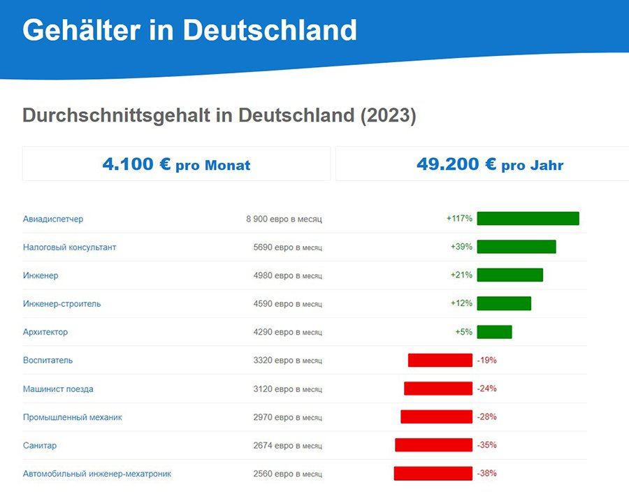 ФРГ – одна из главных экономик не только Евросоюза, но и мира, хотя геополитический кризис оказал негативное влияние, что выразилось в растущей инфляции, увеличении индекса потребительских цен и в целом стоимости жизни. При этом уровень доходов в Германии остается довольно высоким. При этом уровень доходов в Германии остается довольно высоким, в среднем 4 100 евро, но нужно учесть, что половина уходит на налоги, которые достигают в этой стране 47,5%.