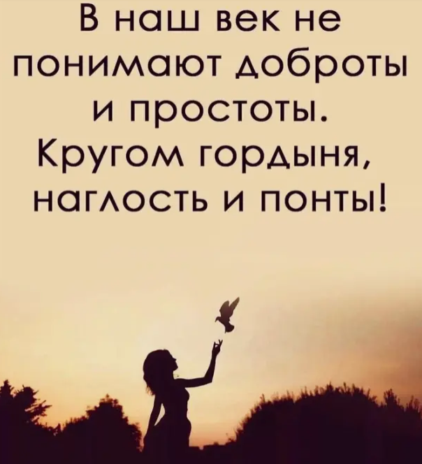 В наш век не понимают доброты и простоты. Кругом гордыня, наглость и понты.