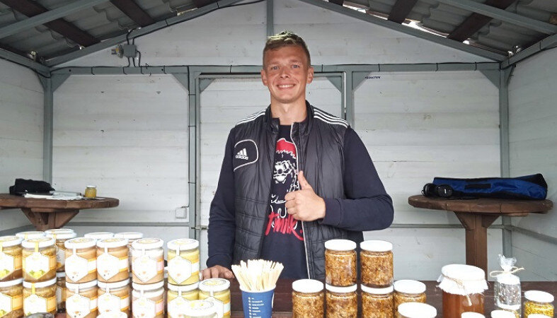Наиболее многочисленными был медовый ряд. Павел, пасечник из Пудожа, пчеловод молодой: завел ульи сравнительно недавно, потому что, как сам говорит, увлекся здоровым образом жизни и здоровым питанием.