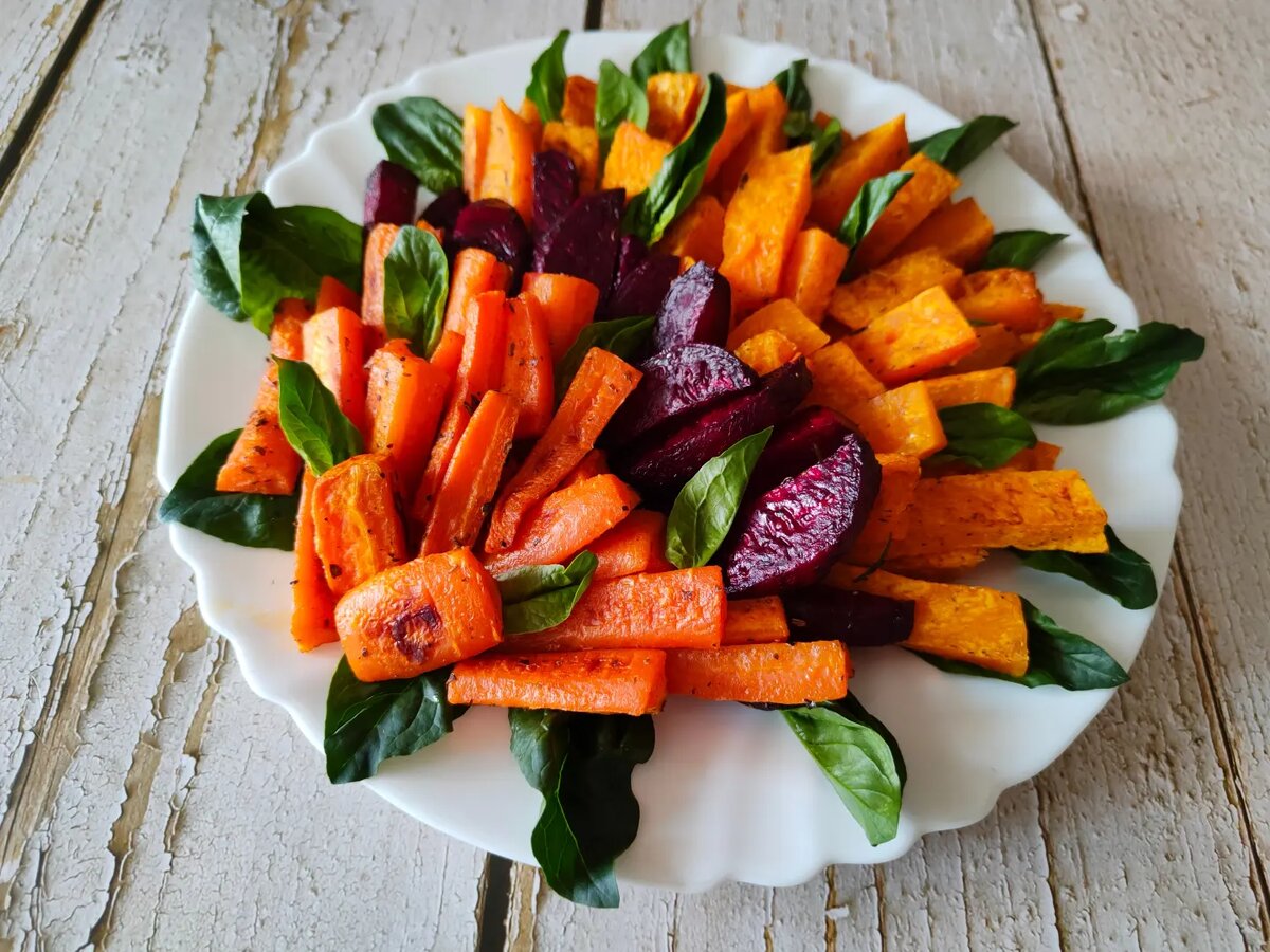 Полезный гарнир или закуска из запечённых в духовке овощей: - морковь - тыква - свёкла - оливковое масло - соль - специи по вкусу 🔥Духовку разогреваем до 200 градусов🌡️ Нарезаем брусочками. Каждый вид овощей отдельно сбрызгиваем оливковым маслом, посыпаем солью и специями по вкусу. Я сегодня использовала такие: - для тыквы: сухой чеснок + чабрец; - для моркови: копчёная паприка + базилик; - для свёклы: сухой чеснок + итальянские травы; Раскладываем палочки в один слой на противне, застеленном бумагой для выпечки: Запекаем в заранее разогретой до 200 градусов духовке в течение 20 минут ⏳: К овощным палочкам хорошо подойдёт сметанно-чесночный соус: Благодарю за просмотр и лайк 🫶 Увидимся на канале "Будет Вкусно!" 👩🍳
