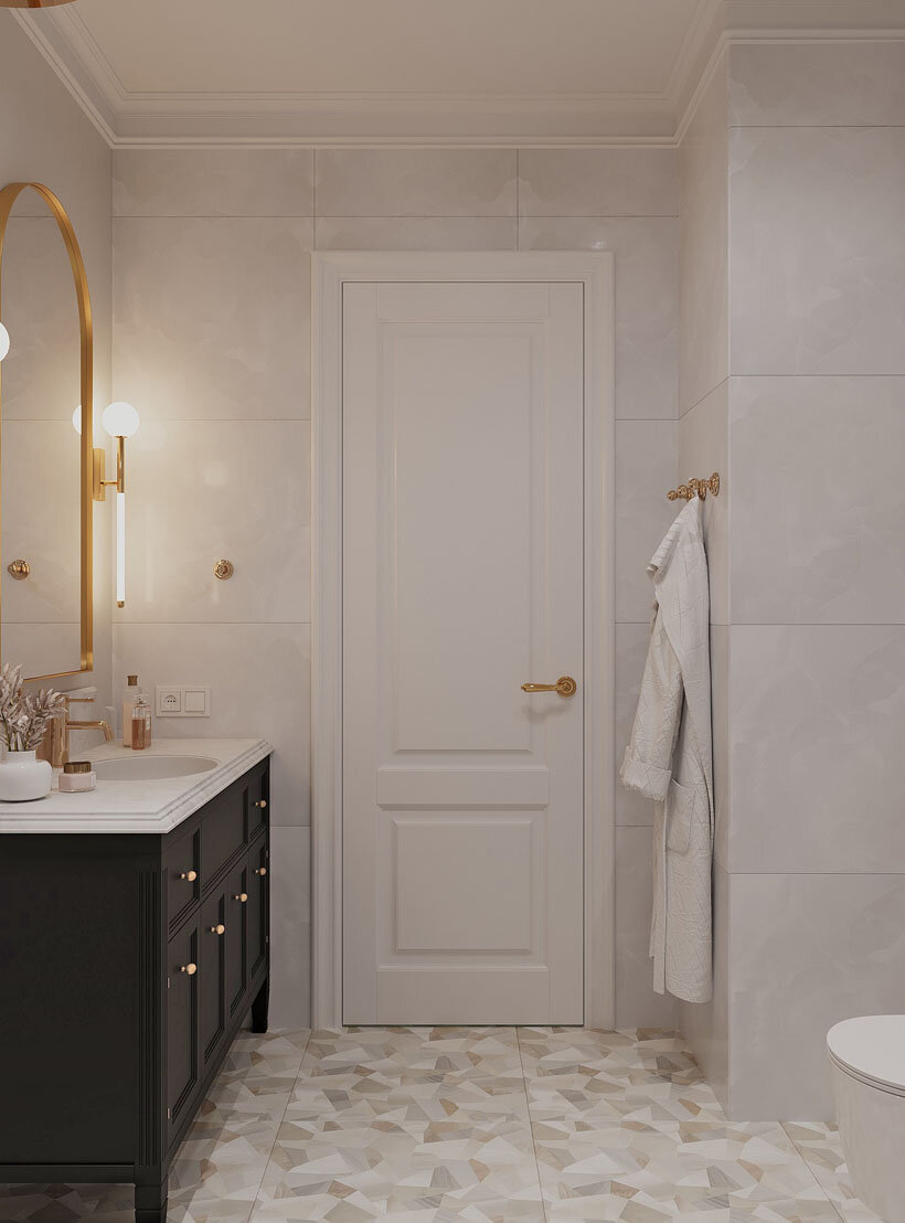 Интерьер ванной комнаты в стиле ар-деко в апартаментах