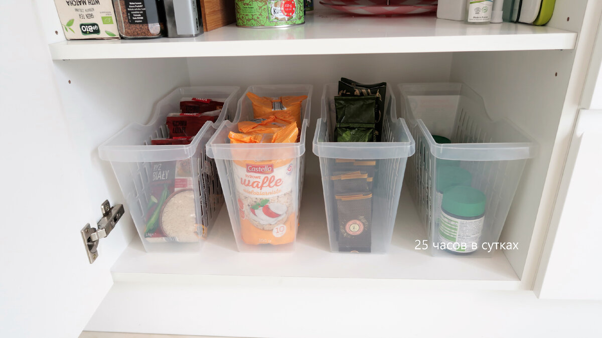 Любите ли вы порядок в доме? Сегодняшняя подборка будет полезна как тем, кто стремится оптимизировать свое пространство для хранения вещей, так и для тех, кто ищет практичные решения для уборки и поддержания порядка в доме. Я поделюсь с вами лучшими находками из магазина 'Фикс Прайс', которые помогут вам сделать ваш дом ещё более комфортным и функциональным. Итак, начинаем! Контейнеры с высокими бортиками Знакомы ли вы с такими контейнерами? Они узкие и длинные, бортики у них высокие. И поэтому они отлично подходят для организации хранения в глубоких шкафах. Эти контейнеры я уже давно использую у себя дома, и возможно, вы их уже видели в моих видеороликах о хранении на кухне. Они очень удобные, поэтому я решила приобрести еще несколько для этого шкафчика. Эти контейнеры мне нравятся тем, что с их помощью можно задействовать свободное пространство в высоту. Они отлично вписываются в свободное место на почти любой полке в моем доме, и пользоваться ими тоже очень удобно. А благодаря тому