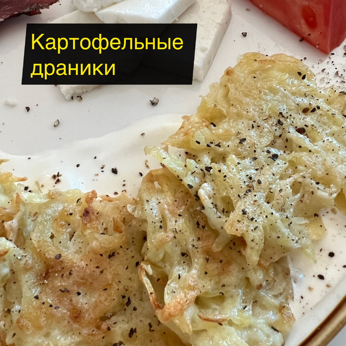 В этом рецепте я рекомендую сначала почистить и потереть картофель, а уже потом доставать остальные ингредиенты и готовиться к приготовлению драников. Таким образом будет время для того, чтобы с драников вытек лишний крахмал. Ингредиенты: Приготовление: 1) Почистить, помыть картофель. Натереть картофель на крупной терке в любую ёмкость. Переложить картофель в сито. Оставить сито с картофелем над кастрюлей/ любой другой ёмкостью. Или положить в раковину, чтобы стекла лишняя жидкость. 2) Вскипятить чайник и вылить на тертый картофель. Таким образом в картофеле будет меньше крахмала. 3) Оставляем картофель в ёмкости или в раковине. Достаем яйца, муку и соль. Ставим разогреваться сковородку на плиту, наливаем масло в сковородку. 4) Разбиваем яйца в любую ёмкость, перемешиваем до однородного состояния. Добавляем к яйцам тертый картофель, перемешиваем, солим. 5) Добавляем муку к картофелю с яйцом, перемешиваем. Должна получится плотная масса, как густая сметана, или как каша. 6) Выкладывае