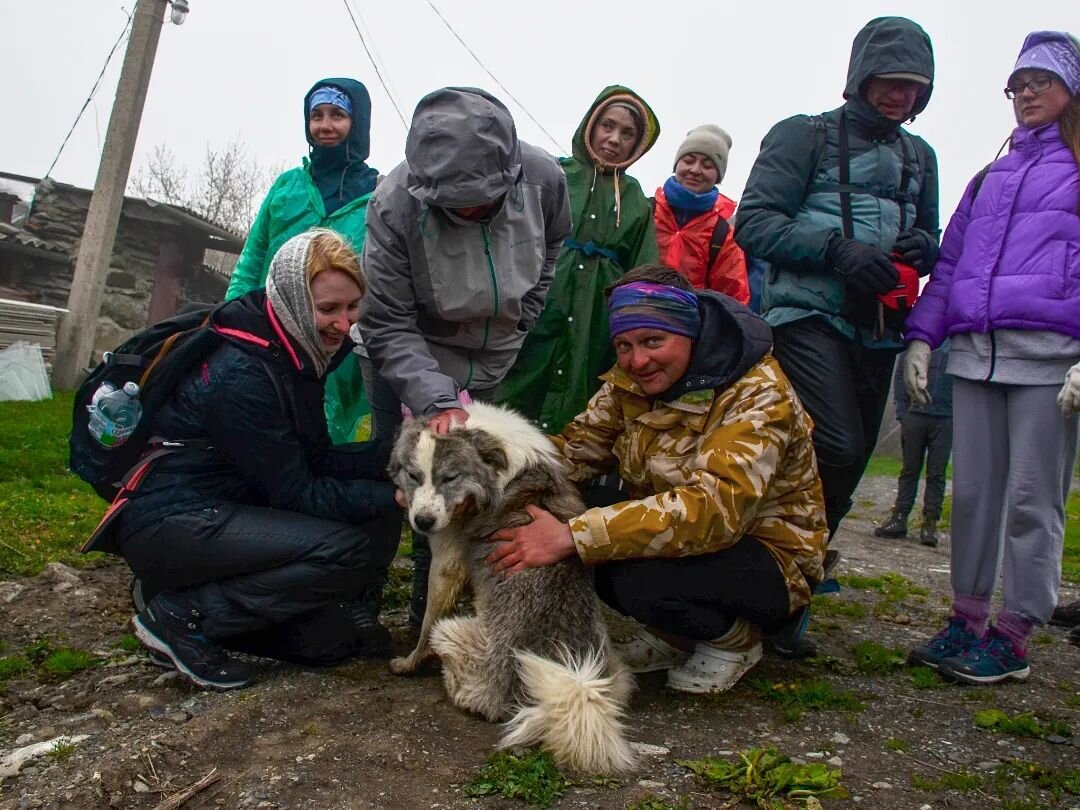 Как я уже говорила ранее, собака выбежала нам навстречу, когда мы прогуливались по селу Джимара. Всем своим видом собака как бы говорила нам: "А кто здесь хороший мальчик? А это я, это я здесь хороший мальчик! Хорошо бы меня за это погладить" 🐕 Все конечно же сразу ее окружили и стали гладить, чесать за ушком и умиляться 😀 Женщина, которая шла следом, рассказала, что собака появилась здесь три дня назад, она прибилась где-то к группе туристов и пришла сюда вместе с ними. Туристы уехали, а собака пришла в дом к этой женщине и решила пожить у них )