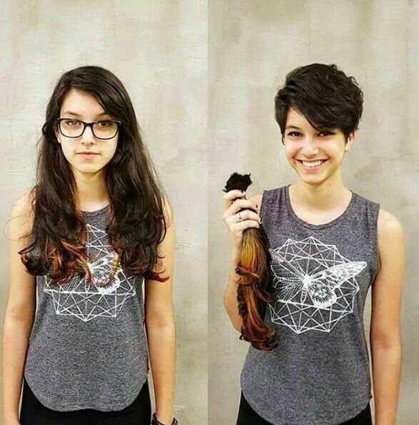 Можно часто услышать о том, что, мол, короткие волосы у женщины — это некрасиво и совсем неженственно. Но на самом-то деле все совсем не так. Очень многие девушки даже не подозревают, насколько хрупкими их делает новая стрижка, и как порою можно превратиться в некого милого эльфа благодаря коротким волосам. В этой статье хотелось бы показать, насколько же сильно женщин может поменять другая длина волос. Из "ботанки" в "пацанку" Необычное перевоплощение. Это пример того, как девушку могут поменять очки и новая длина волос. Ведь до стрижки модель казалась эдакой паинькой-отличницей, а что получилось в итоге! В итоге получился образ откровенной пацанки. В принципе, он хорош, но для многих такой образ покажется весьма спорным. Привет из 2007 Изначальная стрижка у модели здесь явно неудачная. Выглядят волосы немного неухоженно и требуют укладки. Хотя длина девушке явно к лицу. А вот новая стрижка может вызвать вопросы. Она немного напоминает молодых людей из 2007 года, да и скажем откров