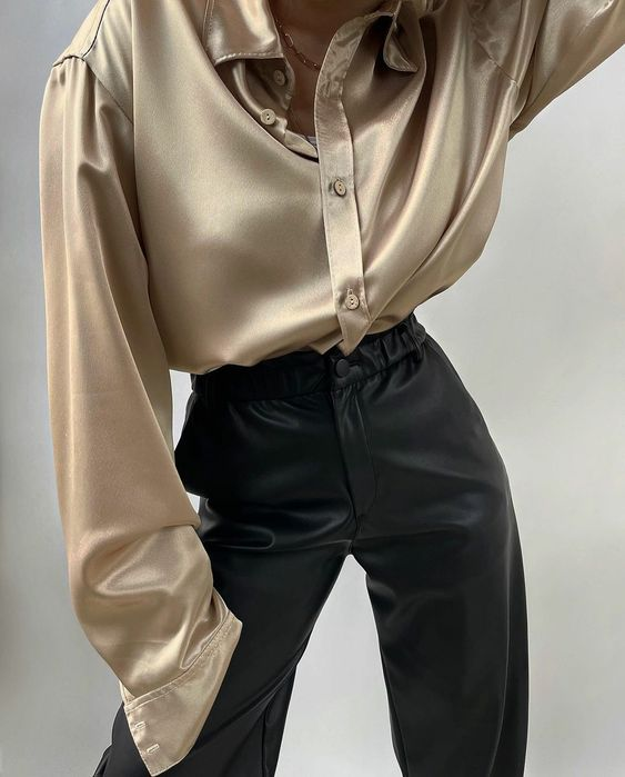 Например, как на фото: брюки по фигуре, но рубашка свободная. Это создаст более интересный силуэт.