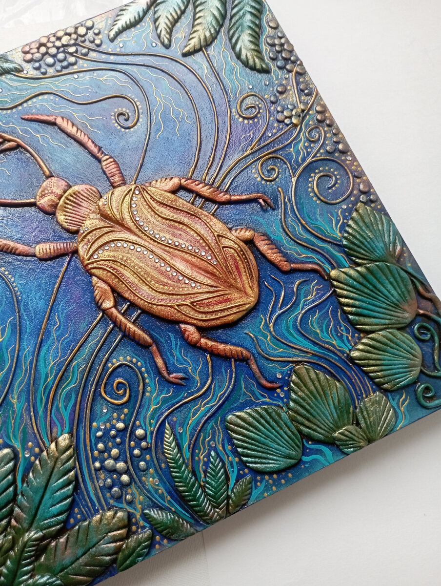 Приветствую вас на своем канале и сейчас немного расскажу о моем творчестве. Я большой ценитель изобразительного и декоративно-прикладного искусства. Мне нравится рассматривать картины и панно, созданные в различных техниках, но более всего меня привлекают те работы, где используются объемные элементы. Именно объем и фактура больше всего притягивают внимание. Конечно, мне захотелось самой создавать нечто подобное и с некоторых пор я стала делать необычные картины, где объемные элементы сделаны из массы на основе шпаклевки и столярного клея. Это выглядит впечатляюще! Мне очень нравится самой и я вижу реакцию других людей на свои работы. Объем действительно придает картине особую притягательность. Здесь я хочу показать свою объемную картину "Жук". Это одна из трёх картин на тему насекомых и растений. Если эта работа вам понравится - ставьте лайк, пишите комментарии и подписывайтесь. Впереди будет много интересного! Публикация взята с моего канала на 9111