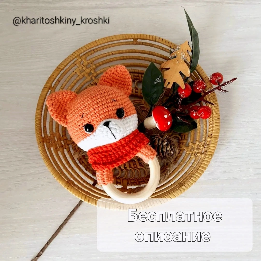 Погремушка-грызунок Лисичка крючком. Описание вязания.