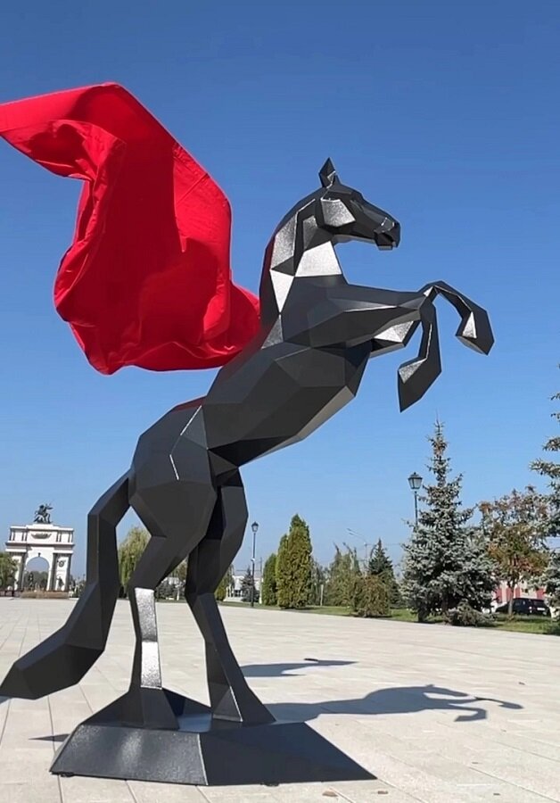 Курский мастер Владимир Кузнеч, создающий полигональные скульптуры, представил новую работу. Это фигура коня. По традиции автор устроил фотосессию с новой работой в узнаваемой курской локации. На этот раз скульптуру он отвез в парк «Патриот» на проспекте Победы и сфотографировал на фоне Триумфальной арки. Не так давно полигональные фигуры Владимира Кузнеча украсили площадь перед цирком, улицу Ленина и парк имени Рокоссовского в Сеймском округе. Там установлены медведь, лев и волк. Иван ПРОХОРОВ, фото Владимира Кузнеча Постоянный адрес новости на сайте «Друг для друга» ~ https://dddkursk.ru/lenta/2023/09/30/101608/. Новости Курска за ~ 30 сентября ~ сентябрь 2023 года.