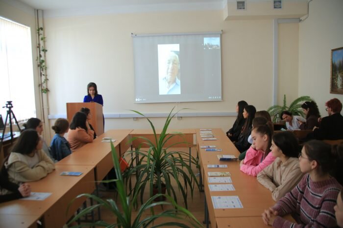 В интеллект-зале библиотеки вуза собрались студенты направления «Филология» и медицинского колледжа отдать дань уважения памяти уникального ученого, педагога, работавшего в Кабардино-Балкарском государственном педагогическом институте с 1938 по 1948 год.