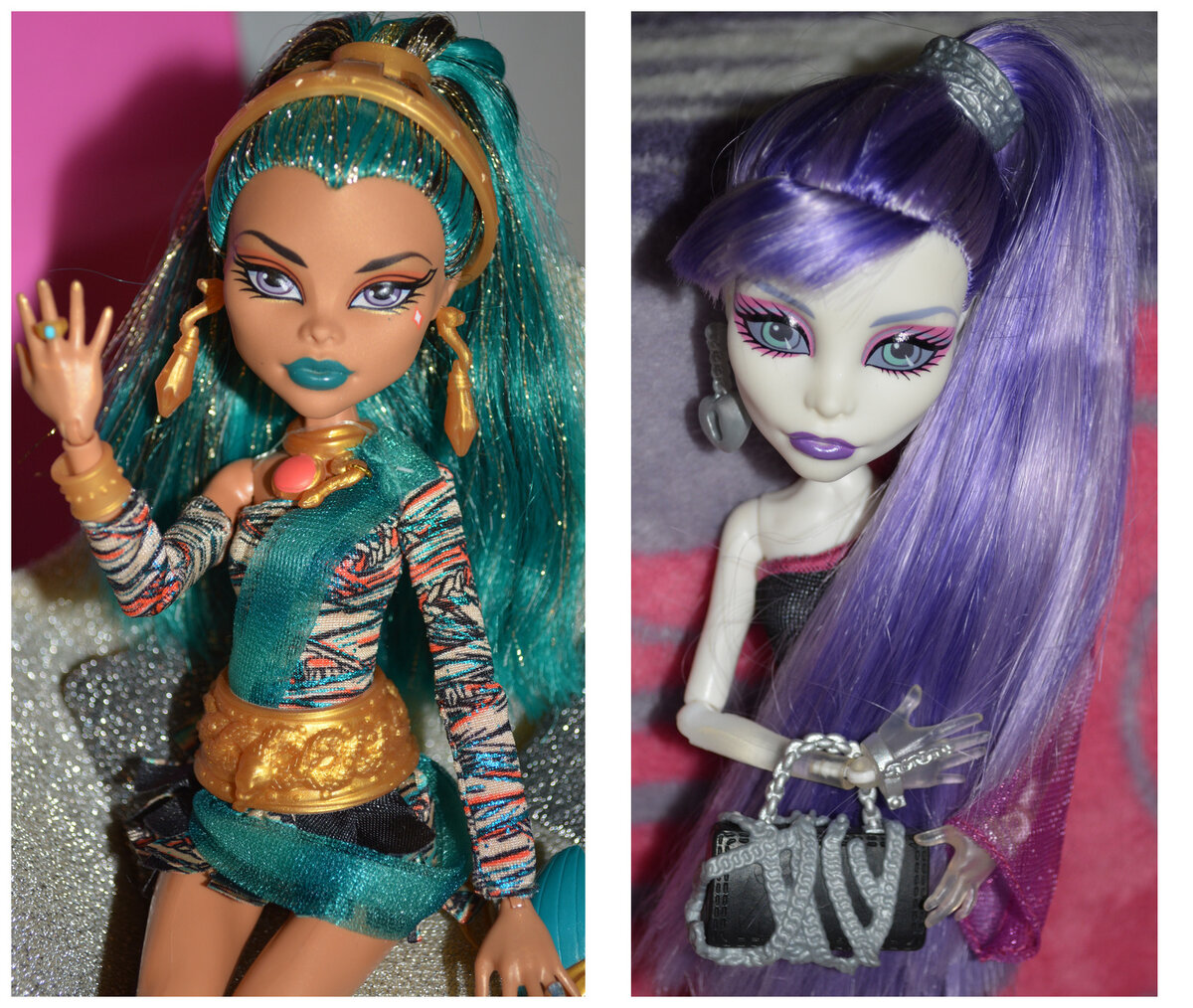 Ровно 10 лет назад я купила своих первых кукол по "Школе монстров". По правде говоря, более проработанных и стильных кукол на тот момент я еще не встречала. Неудивительно, что они меня мгновенно впечатлили. Кстати, подробнее про мой путь в куклохобби можно прочитать здесь => Моими первыми куклами Monster High были Нефера де Нил из базовой коллекции и Спектра Вондергейст из серии "Вечеринка в горошек". Приглашаю вас окунуться в ностальгию и посмотреть мой небольшой фото-обзор на этих потрясающих куколок, сделанный ещё в далеком 2013-ом. Нефера Спектра Дело происходило давненько. Нефера и Спектра уже давно перебрались в новые дома, так как сейчас все мое внимание сосредоточено на BJD. Но я все равно вспоминаю монстряшек с теплотой и ностальгией. Спасибо за внимание!