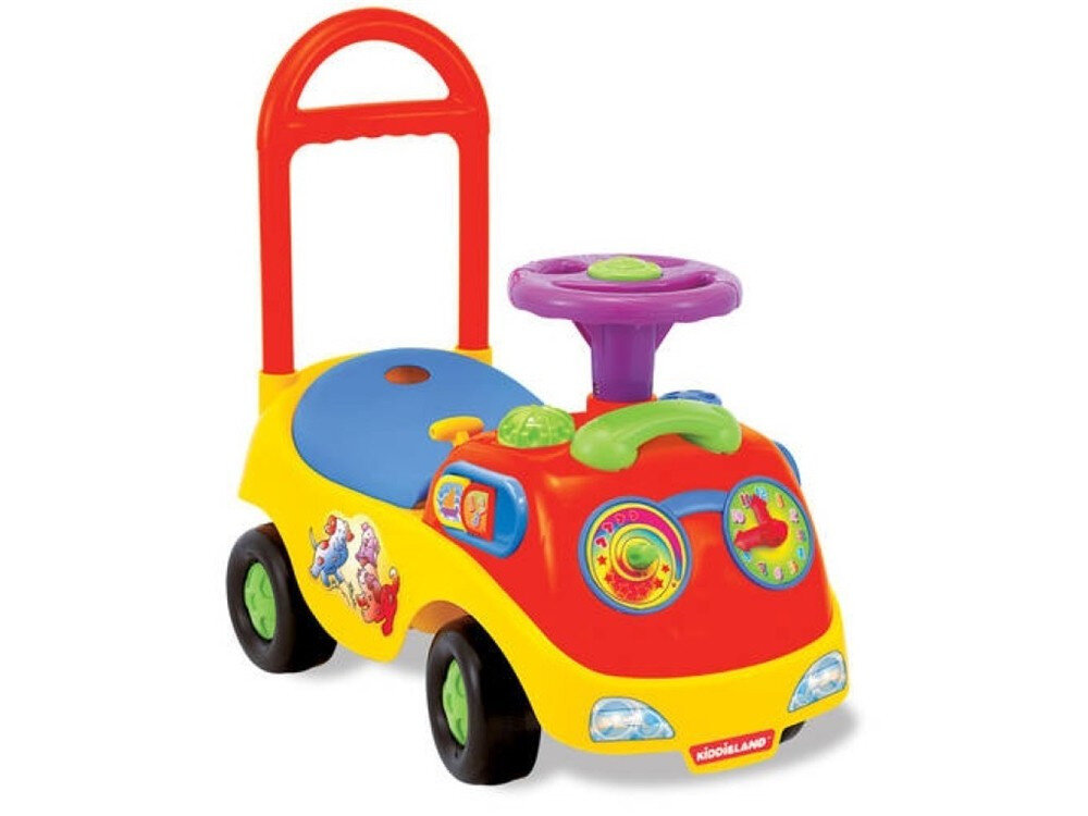 - Толокар для самых маленьких лучше выбирать с высокой спинкой и ограничителем, предотвращающим опрокидывание машинки-каталки назад.