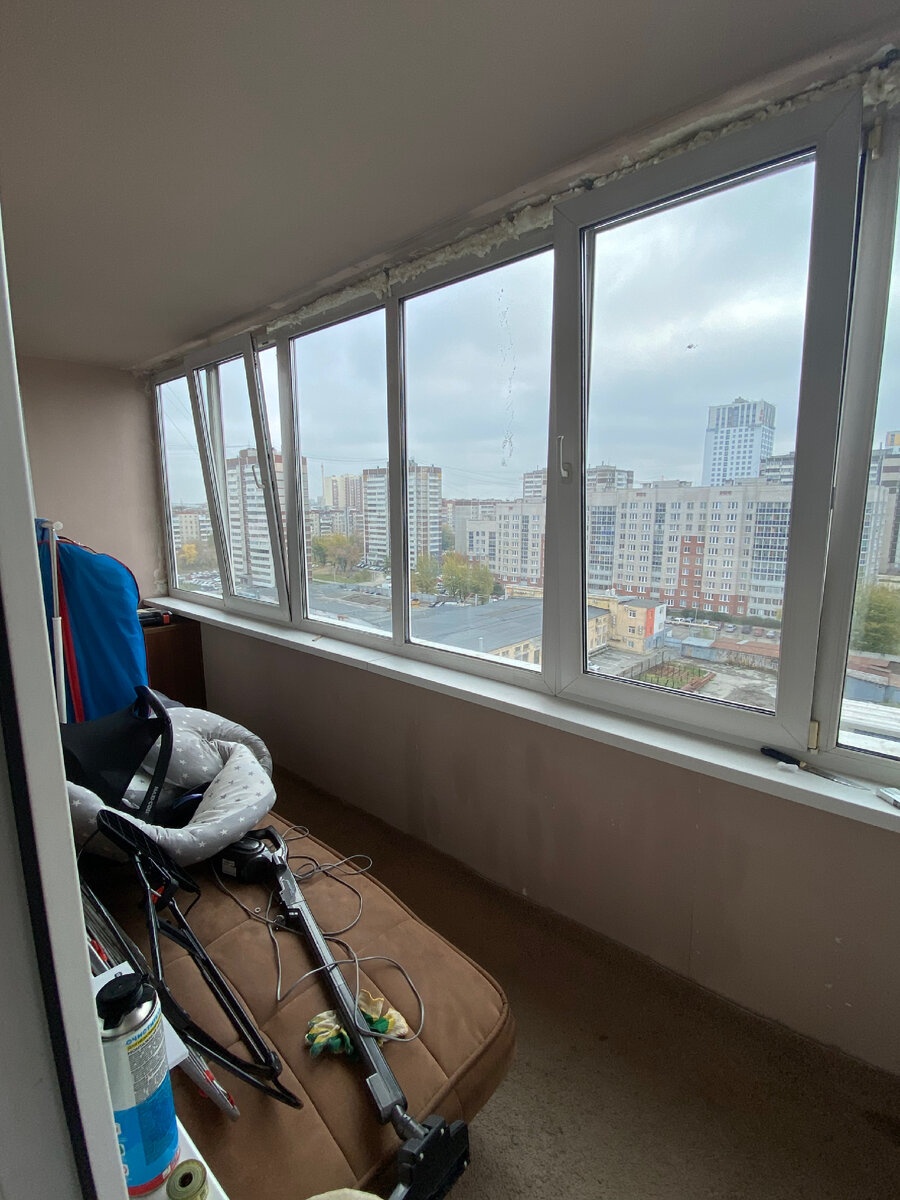 Всем привет! У нас наконец-то начался ремонт балкона. Когда мы покупали квартиру, одним из решающих моментов стал большой балкон. Я когда его увидела, сразу в голове кучу идей, это же как дополнительная комната - 9 кВ.м. У нас стоят хорошие стеклопакеты на балконе и если не закрывать балконную дверь, там достаточно комфортная температура. Зимой конечно холоднее, а летом, так как у нас солнечная сторона, становится как в парилке. Но, на стенах есть трещины, а около одного окна дыры, которые выпускают тепло. Да и с появлением ребенка балкон превратился в склад детских вещей. Там хранится и короб от коляски, подушка для беременных, автолюлька и много другого хлама. Половину вещей я выставила на авито, половину увезем в деревню. Также хотим сделать шкафы на балконе для хранения зимней одежды и бытовых вещей. Начали с малого, убрали старую пену по краям окон, запенели по новой. Стало гораздо тише и теплее. Сегодня я срезаю остатки пены и буду ее покрывать специальным герметиком. Потом мы