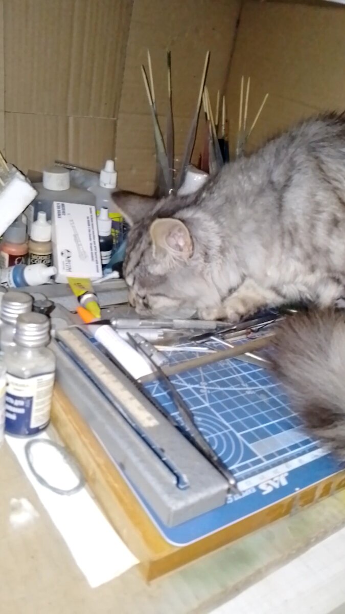 Утро у нас сегодня началось весело. Не скажу, что ничего не предвещало. Ночью я слышала какую то возню на рабочем столике мужа. На нём он собирает модели и там лежат инструменты различные, ну и суперклей, с помощью которого муж эти модели собирает. Тихон давно интересовался содержимым столика, и видно сегодня ночью решил своё любопытство удовлетворить. Вот таким мы его сегодня с утра обнаружили. На шее у него красовался намертво прилипший тюбик с клеем. Я с ужасом представила, что было бы, если бы клей попал ему в рот и склеил бы челюсти🤷♀️ Тюбик был новый, закрытый. Но, видно котика привлёк запах. Тихон его стащил, прокусил и прилип... Пришлось проводить спасательную операцию. Как бы Тихон не сопротивлялся, но с необычным ожерельем пришлось расстаться.