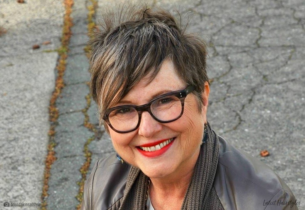 Эта суперкороткая стрижка предназначена для женщин за пятьдесят, которые любят самовыражаться. Это также может быть полезно женщинам в очках, у которых густая текстура или даже если у них тонкие волосы.