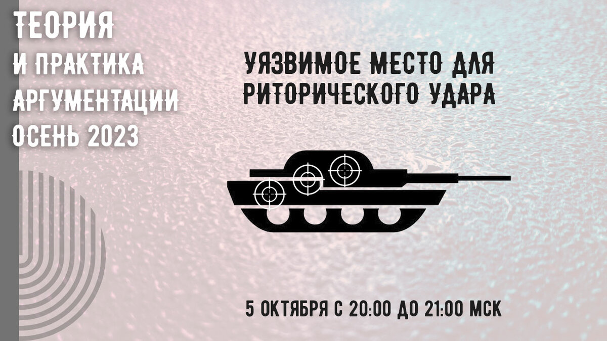5 октября с 20:00 до 21:00 мск в рамках курса "Теория и практика аргументации: 2023 осень (стратегия и тактика нападения и защиты)", состоится занятие. План: 1. Ценность уязвимого места. 2. Удар по тезису. 3. Удар по аргументу. 4. Удар по связке. https://youtube.com/live/hmrkjv0OEUk?feature=share Дисциплина "Теория и практика аргументации": Онлайн-курс "Теория и практика аргументации" на Stepik https://stepik.org/a/179279 ВКонтакте https://vk.com/yuridicheskayaritorika Фейсбуке https://www.facebook.com/groups/yuridicheskayaritorika/ Телеграм https://t.me/yuridicheskayaritorika #Мельниченко#риторика#ораторское_искусство#ораторское_мастерство#уроки_риторики#тренинг#курсы_ораторского_искусства#уроки_ораторского_мастерства#курсы_риторики#репетитор_по_риторике#теория_и_практика_аргументации#стрим#аргументация#теория_аргументации#юридическая_риторика