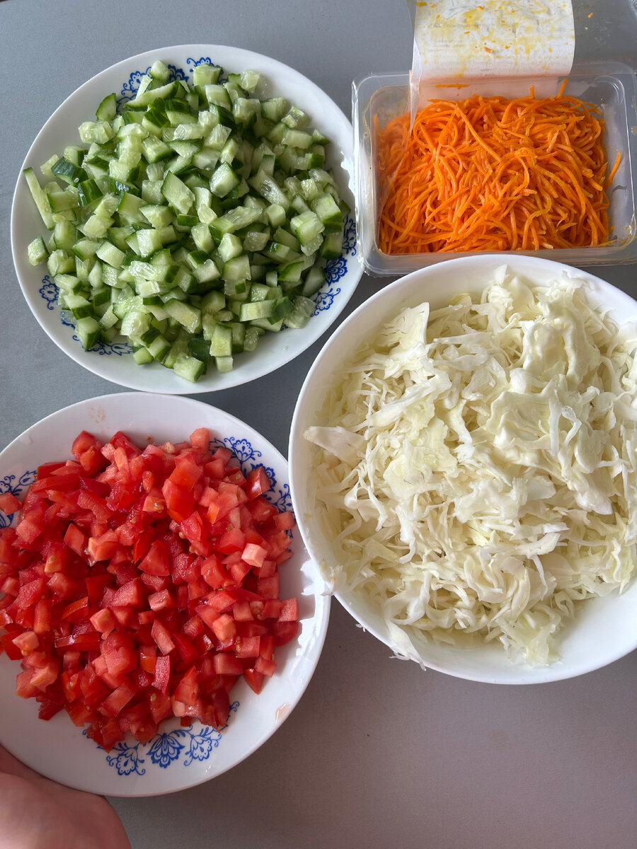 Любители шаурмы со мной согласятся, что скушав одну штуку, тебе захочется еще. Казалось бы можно сделать большую шаурму и наесться ею, но это удовольствие растянется на один день. Давайте приготовим шаурму маленькую, сытную, и которую хватит на несколько дней. Ингредиенты: Начнем наше приготовление с овощей. Режим кубиками огурцы и помидоры, капусту можно порезать обычным ножом или специальным, и достаем морковь по-корейски. Далее режим кубиками филе, засыпаем специями ( не забываем посолить), перемешиваем и отправляем жариться Пока филе жарится, мы сделаем соус Выдавливаем майонез, кисло-сладкий соус и аджику(добавляйте все на глаз и пробуйте на вкус, если что-то не так, то можете добавить чего-то побольше) Филе готово, а это значит, что мы можем приступать к сборке шаурмы. Лаваш делим на три части. Берем одну из частей и обмазываем полностью соусом Далее выкладываем все ингредиенты и сворачиваем нашу шаурму Повторяем тоже самое с другими частями лаваша и отправляем на сковороду,
