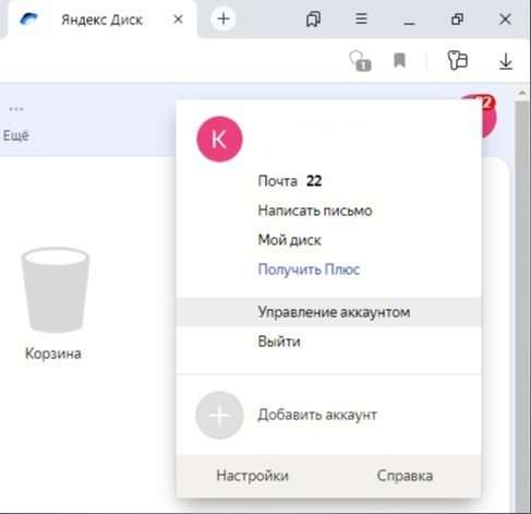 Заходим в свой аккаунт Яндекс и в профиле переходим в "Управление аккаунтом".