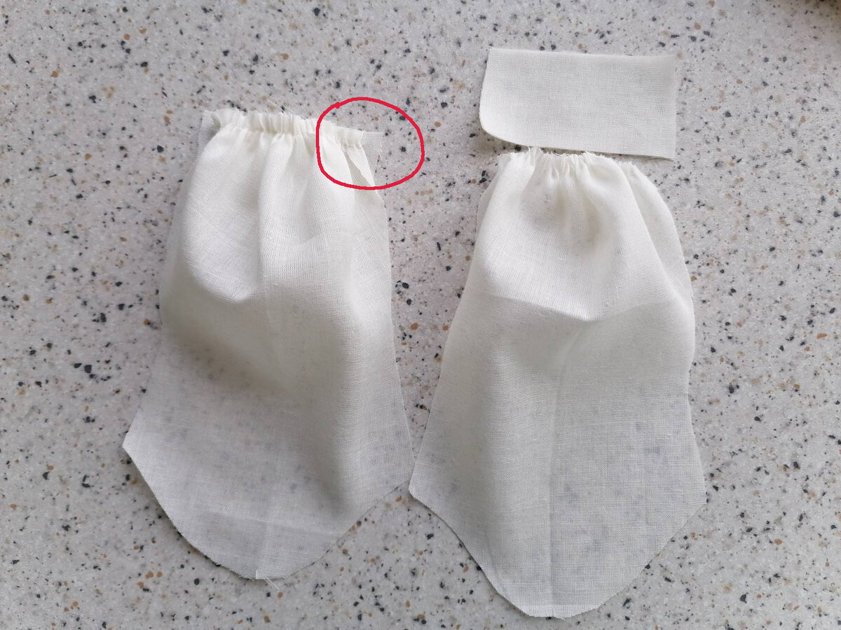 Для легкости соединения деталей делаем на пройме надсечки, чтобы дуга легла красиво и не образовались некрасивые складки и заломы. Утюжим. После этого соединяем рукава по боковому шву наметочной строчкой.
