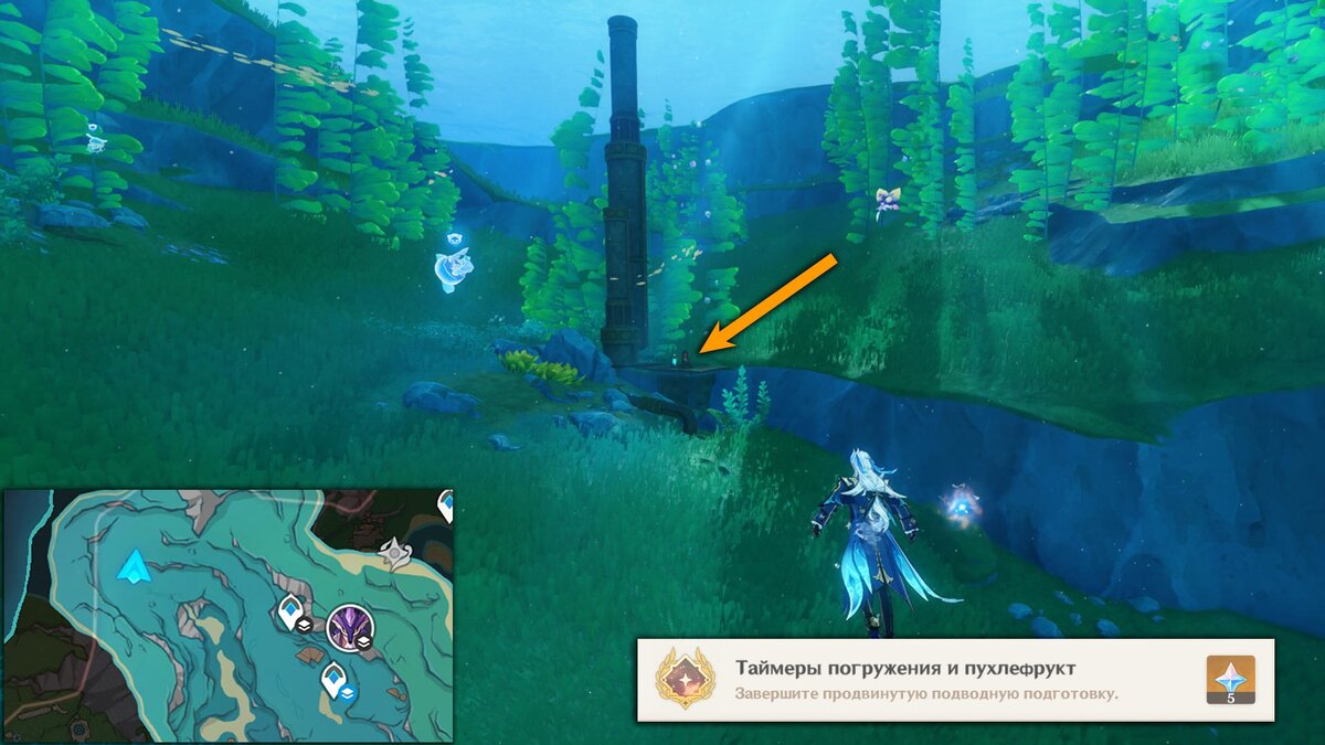 Возле злой местной легенды, есть небольшой терминал, подходим к нему, затем запускаем подводные тренировки.