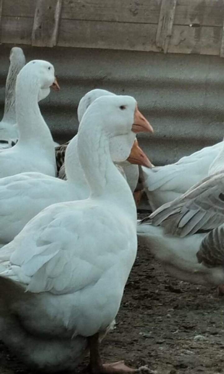 Каждый здоровый холмогорский гусак имеет сразу три примечательные фишки: 10-12 килограммам живой массы (жирное пузико в комплекте), большую шишку над клювом и карман — складку кожи, свисающую с верхней части шеи. И если внешний вид птицы вызвал у вас смутные ассоциации с мопсами и другими жертвами селекции, можете расслабиться, перед вами ребёнок двух известных пород — китайской и арзамасской. Обе любят за их выносливость и вкусное мясо. Неудивительно, что холмогорский гусь унаследовал от предков приличные размеры, крепкое здоровье и огромный срок жизни — до 17 лет! Ещё одну приятную особенность они получили в подарок от своего места рождения. Холмогоры, как и вся Архангельская область, хорошей погодой не балуют, зимы там весьма суровы. Вот и научились животные переживать любые холода. Самец начинает топтать дамочек только по достижении годовалого возраста, а пик его эффективности наступает на третьем году жизни. Гарем самца может вмещать до 4 самок, каждая из которых будет приносить