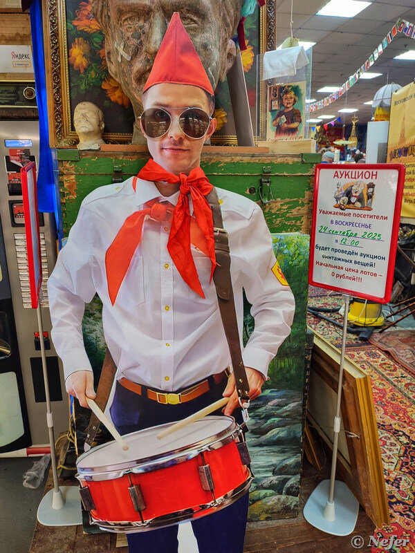 Однажды я уже была в этом магазине. Остались хорошие впечатления. И вот как-то утром в выходной подумалось, что надо бы съездить еще разок, посмотреть на советские товары, поискать артефакты в отделе фикспрайс. Заглянула на сайт посмотреть новости, работает ли ли магазин, и что вообще у них там происходит. Оказалось, именно в этот день слет клуба любителей автомоделей, аукцион винтажных вещей и скидки в отделе фиксированных цен. Впервые побывала на аукционе. Все как в кино, только попроще. На торги выставляются товары, сделанные в СССР. Это могут быть часы, бусы, книга, чайная пара или другие предметы. Стартовая цена - 0 рублей. Участие бесплатное и без предварительной регистрации. Необходимо прийти заранее и взять номерок участника. При мне купили вазу и елочную гирлянду. Параллельно проходит собрание клуба автомобилистов. На столах выставлены советские автомобили различных масштабов. Такое происходит регулярно, чуть ли не раз в месяц. Это была первая встреча после летнего перерыва. М