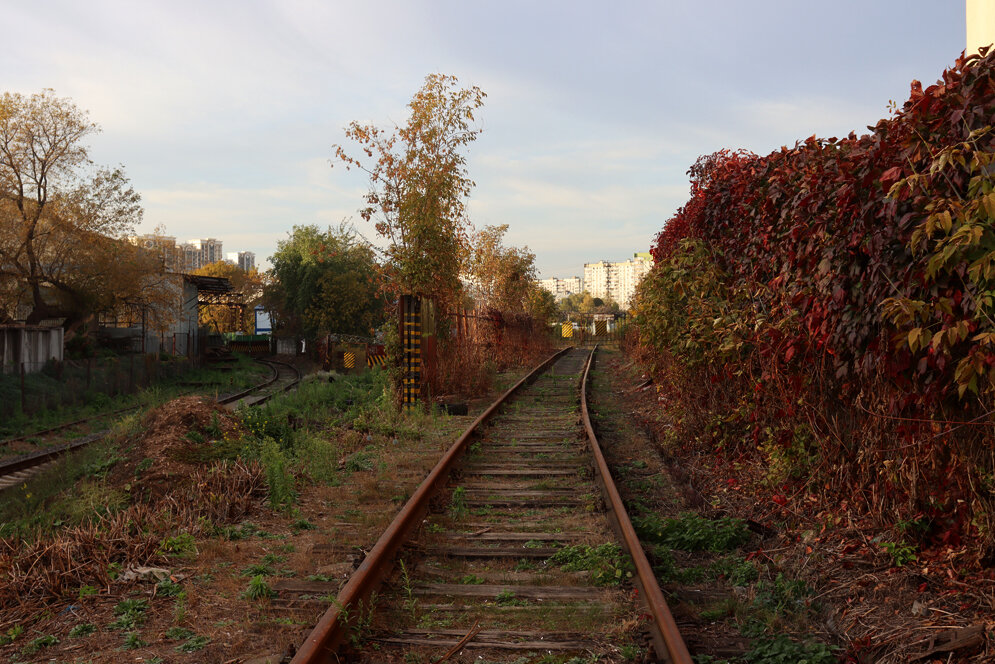 1. Но начну я не с Беговой, а с подъездных путей от Брянского поста. Специально туда заглянул, памятуя о том, что у подъездного пути Краснопресненской плодоовощной базы растёт чудная плантация девичьего винограда, который в это время года хорош как никогда.