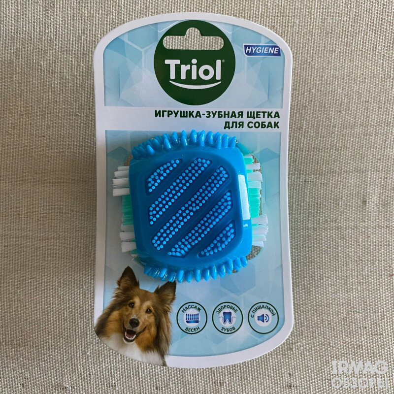 Обзор Игрушки-зубной щетки для собак Triol из термопластичной резины Куб (80 мм) Нашему любимому питомцу скоро исполнится 6 лет. Мужчина уже взрослый. И по собачьим меркам, и по человечьим (42 года, как ни крути). Но есть у Пимпуши слабость одна - новые игрушки. Нет-нет, он и старые свои обгрызыши любит до беспамятства и преданно ждет их возле стиральной машинки, если пришло время их чистить. Но новые игрушки - это просто страсть страстная! В преддверии дня рождения я решила приобрести ему новенькую игрушку, которая совмещает в себе и приятное, и полезное. Это игрушка - зубная щетка для собак. Игрушка изготовлена из термопластичной резины и является удобны аналогом зубной щетки для собак: фактурный рельеф, жесткие ребра и щетинки, расположенные на поверхности игрушки, помогают удалять зубной налет и массировать десны во время игры. Размеры куба 807870. Для карликовых пород, скорей всего, такая забава не подойдет. Нашей таксе куб понравился с первого нюха. А теперь первый неудачный кусь