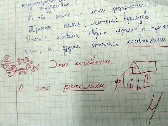 Не скованные жесткими рамками правил, школьники часто выдают совершенно гениальные ответы. У педагогов со стажем подобных перлов в копилке немало. Многие из таких шедевров попадают в сеть, становятся популярными и даже вирусными. В подборке ниже вы найдете самые забавные варианты ответов в ученических тетрадях.