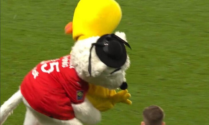 Маскот «Ренна» вырубил коллегу из «Нанта» перед дерби. Понадобились носилки