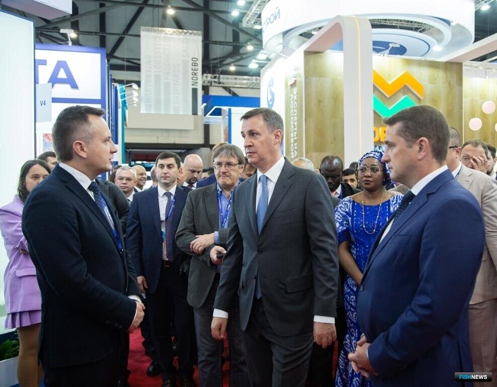В день открытия шестого международного рыбопромышленного форума, а также выставки рыбной индустрии, морепродуктов и технологий площадку в питерском «Экспофоруме» посетил глава Минсельхоза Дмитрий Патрушев. Совместно с членами иностранных делегаций министр осмотрел экспозицию и пообщался с рыбаками, рыбопереработчиками, рыбоводами и руководством прибрежных регионов.