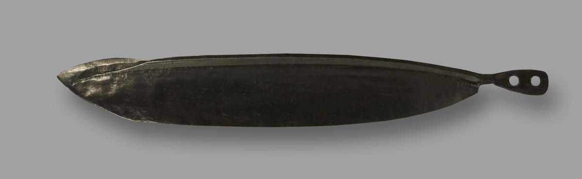 Дамы и господа, у меня тут прямо загадка века. Лазая по сайту Государственного Эрмитажа, я внезапно обнаружил там ЭТО: ЭТО подписано как "Нож штурмовой, Европа, XVIII-XIX вв." Длина 67,7 см (судя по всему, полная). Инвентарный номер З.О.-4325. Примечательно, что изделие снабжено пометкой "Не представлено в постоянной экспозиции". Ваш покорный слуга сломал себе всю голову, пытаясь понять, что это такое и чем может быть. Длина вполне соответствует тесаку или хиршфангеру, но... Какой такой "штурмовой нож" во время, когда даже понятия такого не существовало? Подобная терминология появилась в XX веке... Странная ладьевидная форма? Геометрия?.. Вот этот странный крохотный хвостовик с двумя подозрительно крупными отверстиями под заклепки?.. Судя по примерному соотношению длины и ширины, при 67 см длины - шириной он где-то в ладонь. Это очень много. Это слишком много даже для крестьянских боевых ножей - тем более что уже в XVIII веке их толком не осталось. Крестьянские боевые ножи, корды, хау