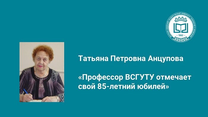 Более полувека своей жизни отдала ВСГУТУ профессор Татьяна Анцупова, заслуженный деятель науки Бурятии. Она — основатель династии, которая посвятила Восточно-Сибирскому государственному университету технологий и управления 107 лет.