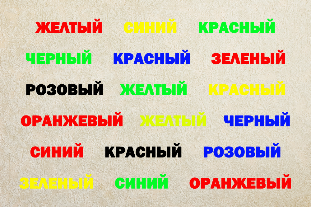 Возьмите лист бумаги и цветные карандаши или ручки. Напишите на листе бумаги в 6 строчек по три цвета, но используя другой цвет карандаша или ручки. Посмотрите на лист внимательно одну минуту и попробуйте запомнить слова. Закройте лист и попробуйте написать все, что запомнили цветными карандашами или цветными ручками. Что у вас получилось? Если получилось запомнить мало, не расстраивайтесь, возьмите первые три строчки и попробуйте запомнить их. Затем запомните и напишите вторые три строчки. Потом попробуйте запомнить и написать все шесть строчек вместе.