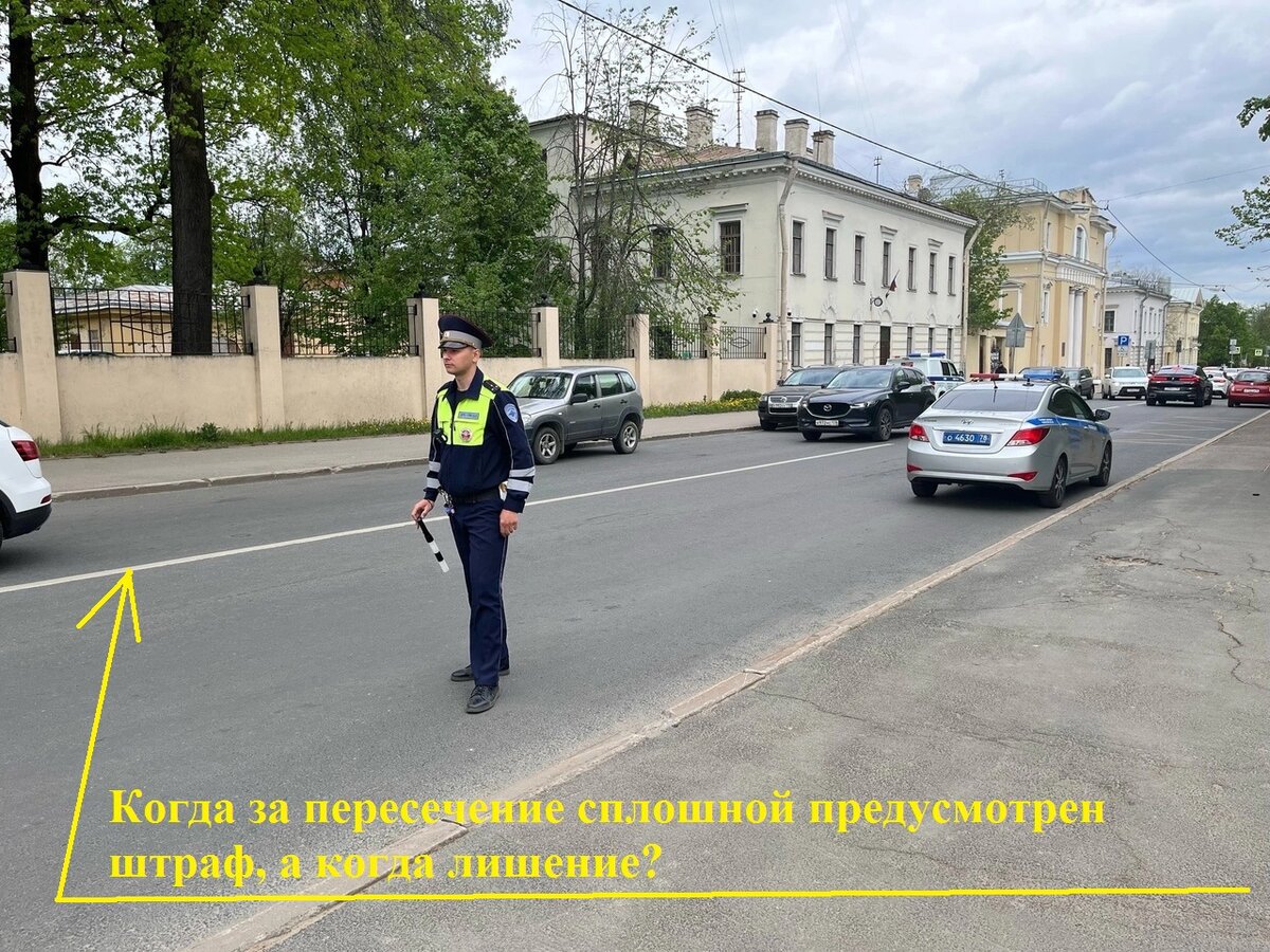 За какое пересечение сплошной линии разметки водителя лишат прав, а за какое предусмотрен только штраф.