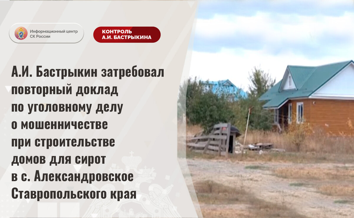 А.И. Бастрыкин затребовал повторный доклад по уголовному делу о мошенничестве при строительстве домов для сирот в с. Александровское Ставропольского края