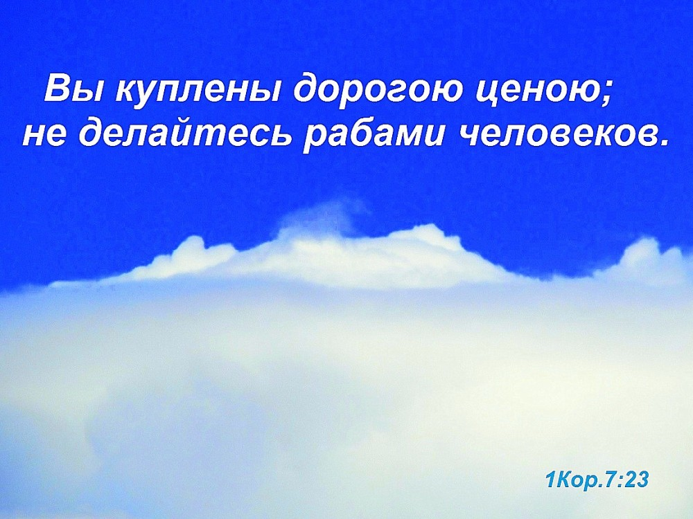 1 октября 2023, конспект проповеди МСЦ, г.Дедовск 1 Пет.1:19 искуплены драгоценною Кровию Христа, как непорочного и чистого Агнца. Понимание, насколько я представляю ценность для Бога, повлияет на всю мою христианскую жизнь. Вопрос Богопочитания и Богопослушания будет в жизни на особом уровне, если я буду понимать, насколько дорого Господь заплатил. "Не делайтесь рабами человеков." За каждого из нас заплачена высокая цена. Но каждый из нас может сделаться рабом человеков. Мал.3:17 И они будут Моими, говорит Господь Саваоф, собственностью Моею... Бог нас приобрел, написано, и Он хочет, чтобы мы стали Его собственностью. Деян.27:23 ..Которому принадлежу я и Которому служу... Как это важно понимать, ведь от этого зависит, а смогу ли я служить Господу или не смогу. Рим.6:16 Неужели вы не знаете, что кому вы отдаете себя в рабы для послушания, того вы и рабы, кому повинуетесь, или рабы греха к смерти, или послушания к праведности? Вопрос: а чей я? На основании этого текста давайте зададим