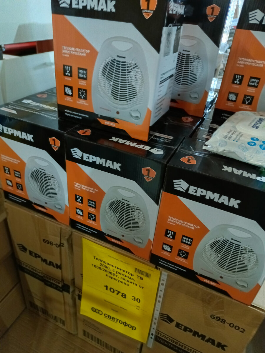 В "Светофор" завезли тепловентиляторы для обогрева помещений, мебель, полотенца, кофе, гранат из Египта и конечно много мясных продуктов в разной категории. Но и кроме всего этого разные позиции по низким ценам, которые многим пригодятся дома и в быта. И так, обзор из "Светофора" в городе Крымск. Небольшой напольный тепловентилятор "Ермак" с 3 режимами работы, мощностью 2000 ватт, для помещений до 15 м2. В приборе есть защита от перегрева. Цена 1078 рублей. Сборная корзина для белья "Лён" с крышкой и боковыми ручками, объёмом 75 литров. Цена 624 рубля. Детское мыло с ромашкой для всех возрастов, которое не вызывает слёзы, массой 200 грамм. Цена 44 рубля. Махровое жаккардовое полотенце из Узбекистана, размером 60/130 см. Цена 335 рублей. Шкаф-пенал под стиральную машинку с двумя дверцами и тремя полками, размером 64/33/180 см. Цена 2735 рублей. Светодиодный светильник-проектор DISCO Е-27, с переходником для розетки. Цена 117 рублей. Хромированная, белая или чёрная полка на выбор, из 3 я
