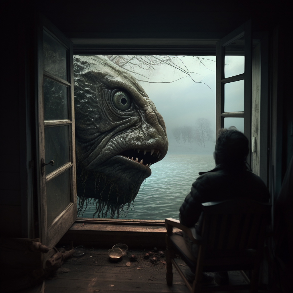 Звук прекратился, а спустя секунд пятнадцать, ко всем окнам в доме прильнули монстры, которые смотрели на меня со всех сторон. Все они были похожи на неудачные эксперименты матушки природы, или безумного ученого. Ни одно существо не было похоже на другое, это были твари сотканные из разных лоскутов ткани, но было в них и нечто объединяющее. У всех них присутствовали части тела морских гадов, таких как: рыбы, креветки, кальмары, осьминоги, дельфины и другие. Но все эти части тел, были криво перемешаны между собой, с некоторыми вкраплениями фрагментов крупного скота.