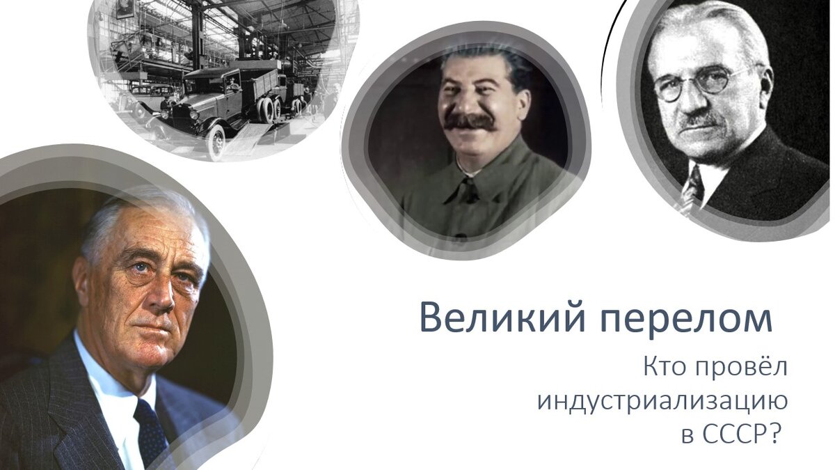 "На помощь Советскому Союзу пришла столь ненавистная «мировая буржуазия». Непрерывный бурный рост 1920-х закончился тем, что в 1929 году мировая экономика рухнула. Началась эпоха Великой депрессии. К этому же времени промышленность Запада, в первую очередь США, достигла выдающегося уровня, включающего массовое внедрение типового проектирования, конвейерное производство, автоматизацию и широкое использование машин и сложных станков. Это позволяло продавать хоть на край света готовые заводы, которые оставалось лишь собрать и приступить к массовому производству продукции.