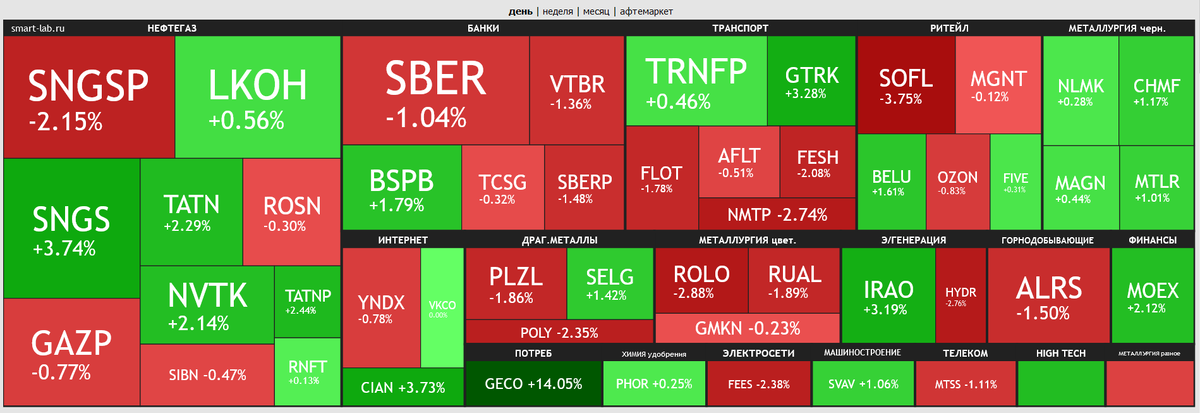 На российском рынке боковик продолжается, в телеграм и пульсе боль, и со временем ее будет еще больше, народ еще не осознал, что такое боковик. Индекс ММВБ в первой половине дня индекс подрастал, а вот вторая половина была не такая положительная и индекс незначительно просел и показал результат в минус 0,03% 3132 пункта. РТС в минусе на 1,53% 992 пункта по индексу.