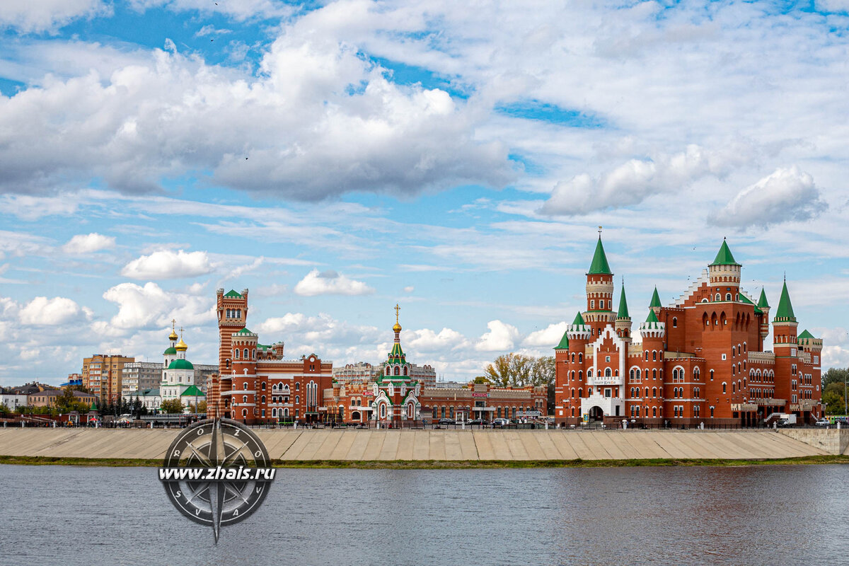 Желаете увидеть достопримечательности Парижского Диснейленда или полюбоваться архитектурными "излишествами" знаменито баварского замка Нойшванштайн? Ну что же, желание вполне выполнимое и самое главное для этого не нужно покидать пределы нашей страны, а надо всего лишь изыскать возможность посетить столицу Республики Марий Эл - прекрасный "многопрофильный" (в архитектурной смысле) город Йошкар-Олу и найти в нем Патриаршую площадь, которую впрочем не с чем и не перепутаешь и которая легко узнаваема со многих точек обзора по своим "специфическим" признакам. Собственно, вот она перед нами во всей своей красе. Поскольку к объекту нашей сегодняшней публикации мы направляемся со стороны другого знакового места города (Площади Республики Пресвятой Девы Марии), то чтобы попасть на Патриаршую площадь нам надо преодолеть водную преграду в "лице" речки под названием Малая Кокшага и сделаем мы это по Воскресенскому пешеходному мосту, миновав который сразу оказываемся перед архитектурным ко